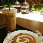 「アイスカフェラテ」に「エスプレッソ」+「キャラメルナッツソース」+「アイス」を組み合わせたメニューです。